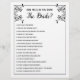 Vill du inte skriva ut dina egna bröllopsduschspel? Använd dessa flygblad med redigerbara frågor. Beställ antal efter behov; Bröllopsduschspel "Hur väl känner du bruden?" med redigerbara frågor. Jag föreslår att du skriver dina frågor i en textredigerare som Anteckningar eller Word och kopierar och klistrar in dem i denna textruta. Dubbelavstånd mellan frågorna och använd versaler för denna "look". Du kan också ändra flygbladets färg så att den matchar din bröllopsdusch med hjälp av bakgrundsfärgerna och pipetten. En version med fasta frågor finns också här: