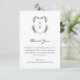 Elegans och tidlöshet kombineras i det här traditionella, men ändå chic, Monogram Bröllop-tackkortet. Det här svarta och vita tackkortet är enkelt men sofistikerat och har ett handritat botaniskt monogram, vintage vapensköld monogram och romantiskt kalligrafiskt skript. Fira din union i stil med det här tidslösa och klassiska bröllop-tackkortet. Sök efter samordningsprodukter i samlingen för den romska Vintagen Monogrammed Vapensköld Bröllop.