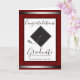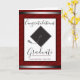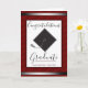 Faux silver-folie på vin och röd pinstrimlad bakgrund. Fint och elegant typsnitt säger "grattiss student" med litet teckensnitt som kan tas bort eller ge ger dig utrymme att lägga till högskole- och klassdatumet för studenten. Insidan av kortet är justerbar text med påstående i grattisar med alternativet Skript namn för avsändaren. Mortarboard-grafik framför kortet som skapas av Valarie Wade i illustrator. All text är justerbar.
