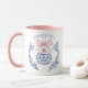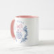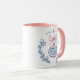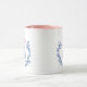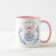 Mugg har en julprydnad med en blå och vit kinoiseriutformning med rosa båge. Du kan anpassa dig med namn.
