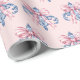 Denna julklapp har en dekoration med blått dammmönster med en rosa båge på rosa.