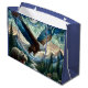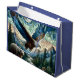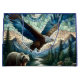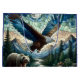 Födelsedagsgåspåse. Ai art som skildrar en brunbjörn och Eagle som flyger i bergen med en fullmåne på natten i mosaikliknande stil.