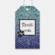 Bakgrunden till den här produkten har en mosaikblå mönstervåg. Den här unika designen har också en stor svart sida tillsammans med en ram som ger en solid bakgrund för text. Orden "tack" kan snabbt ändras för att återspegla vad du vill.