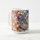 Bilden är en färglös mosaikgrafik som har en mönster som är svår att vrida och linjer. Utformningen omfattar en mängd färg, t.ex. blått, grönt, gult, orange och rött, som skapar en dynamisk visuell effekt. Mosaiken delar är uppbyggd på ett sätt som bildar ett flytande, nästan blommigt-liknande mönster med runt och spiral inslag. Bilden är infångad på grund av sin komplexitet och den harmoniska blandningen av färg.