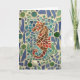 Det här kortet innehåller ett foto av en originalmosaik. Sjöfärgen görs i bruna och orange nyanser omgivna av blå och grönt.