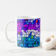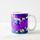 Detta häpnadsväckande mugg-presenter är en fantastisk mosaikplatta mönster i skuggor av lila, rosa, blått, turkos och vitt.
