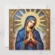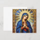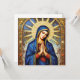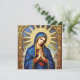 "Denna utsökta design visar en bild av Jungfru Maria i en rik, detaljerad mosaikstil. Hon avbildas med en lugn min, slutna ögon i bön och knäppta händer. Hon är insvept i en djupblå mantel prydd med guldtrim och stjärnor, mot en välvd bakgrund av en strålglans och stjärnhimmel. Den invecklade mosaikstrukturen och de gyllene accenterna ger bilden en känsla av helig storhet och tidlös konstnärskap. Denna design är mycket lämplig för produkter med religiöst, historiskt eller klassiskt konsttema. Föreställ dig den på religiösa ikoner, andliga föremål, ramade konsttryck eller elegant brevpapper."