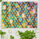 Denna Medelhavsmosaikdesign inspirerades av min resor till Spanien, Italien och Sydamerika, där mosaikkonsten är mycket stor. Det finns mosaik överallt på murar, väggar, bord, golv, bassäng och fontän. Det är en konst som kräver mycket tålamod, eftersom den är mödosamt långsam att skapa, precis som målningen av denna design.