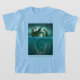 Mosasaurus Alert! This dramatic image is a Mosasaurus silently gliding through the ocean, looking for his next meal. This is a real Dinosaur that was made famous in the Jurassic World movie. He spots his prey and is getting ready to jump out of the ocean to eat some other Dinosaurs on an island, including a T-Rex and a Velociraptor. This shirt is available in various sizes, colors and styles for kids and adults.
