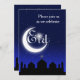 En siluett av en moské på en natthimmel bakgrund med måne och stjärnor.