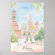 Moskva Ryssland Gouache Paint Illustration Travel Poster