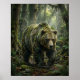 A majestic moss bear walks through an ancient woodland where strength and nature become one. Powerful bear anatomy merges with velvety moss, bark textures, fern growth, and living forest details across its shoulders, back, and crown. Towering trees, roots, mushrooms, stone ruins, drifting mist, and filtered green light create a mystical atmosphere full of depth and wonder. This bold fantasy wildlife design adds rustic luxury to lodges, cabins, offices, or statement interiors. Perfect for bear lovers, woodland decor fans, and nature-inspired gift collections.