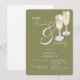 Moss Green Champagneglas Bröllopsbrunch & bubblig inbjudan. Rundad.