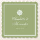 Moss green wedding paper coaster for a refined estate wedding, featuring elegant handwritten calligraphy in a traditional formal and old money aesthetic. Designed for the romantic bride hosting a classic southern or country club wedding, with soft olive green tones and understated luxury. Pair with matching napkins for a cohesive, elevated tablescape.
