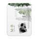 Vattenfärgad träd. Moss grönt och vitt modernt monogram sparar datumet. Foto. Filtret Svart och vitt appliceras på fotot.