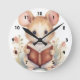 Möss läsande bok fantasifull söt rund klocka