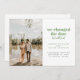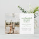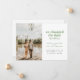 Om ni ändrade datum för er bröllopsdag men bestämde er för att inte vänta med att gifta er och rymde istället, dela er stora nyhet med era nära och kära med detta elopement-kort. Det har mossgrön och mörkgrå text med plats för ett foto samt detaljer om ert elopement. Baksidan av kortet har plats för ett personligt meddelande.
