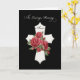Det här elegantens sympatikort är en hjärtlig hyllning till ett älskat moster. Med ett vitt kor i förankrat med röd ros, som representerar återupplivning och evigt liv, ställs konstruktionen mot en slående svart bakgrund. På framsidan står det "In Loving Memory" (In Loving Memory), som ger ett tidlöst minnesuttryck. Inuti finns ett budskap om komfort och tillit som ger stöd till dem som sörjer förlusten av ett omhuldat moster.