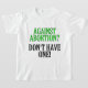 Här är en enkel idé för kvinnor som är abortmotståndare: De borde inte ha abort! Tala med denna valvänliga handelsvara som säger: mot abort? Ta inte en!