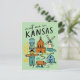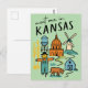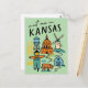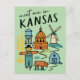 Upptäck Midvästerns hjärta med detta charmiga vykort "Meet Me in Kansas", som visar en förtjusande samling Kansas-ikoner i en rolig doodle-stil! Detta fantasifulla illustrerade vykort fångar essensen av Solrosstaten, med allt från gyllene majsfält och en vänlig fågelskrämma till en klassisk väderkvarn, en majestätisk regeringsbyggnad och en mysig bondgårdsscen. De lekfulla illustrationerna och tydliga bokstäverna gör detta vykort till en unik och minnesvärd hyllning till Kansas, USA.