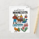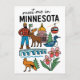 Det här vykortet från Minnesota är den perfekta souveniren från din resa genom Nordskogen, ett roligt minne från en resa till Minneapolis eller St. Paul, eller en genomtänkt present till naturälskare, campare och alla som älskar äventyren utomhus och Minnesotas unika kultur. Den glada designen gör det perfekt för att dela din kärlek till denna fantastiska stat