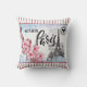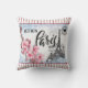 Söt Paris-temat dekorativ kudde med rand, Eiffel Torn, Cherry-Blommar och ett simulerat porto frimärke som lyder "Made with Kärlek". Välj storlek och struktur.