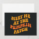 Denna design har frasen "Meet Me at the Pumpkin Patch" som visas i ett djärvt, retroinspirerat teckensnitt med ett lekfullt, vågigt utseende. Texten är arrangerad i en förskjuten, diagonal layout som ger designen en dynamisk och livlig känsla. Färgpaletten omfattar varma höstliga nyanser, med de översta orden i en gyllene gul färg som övergår till en rik orange nedåt, vilket skapar en gradient effekt som förstärker det festliga hösttemat.