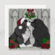 Vackert handritade och färgade Newfoundland-valpar som kysser under misteln