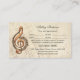 Affärskort med en konstnärlig bild av en musikalisk anteckning på en faded Music lakan-bakgrund. På baksidan står fält för att göra avtalade tider.