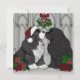 Vackert handritade och färgade Newfoundland-valpar som kysser under misteln
