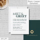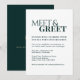 Öka nätverkshändelsen med vår inbjudan till evenemanget Möte och Greet Business Networking. Den här inbjudan har en enkel mörk grönt utformning med guld-accenter och anger perfektens tonläge för kommande händelse genom att ha en enkel professionell, klassisk typografi och en logotyp för anpassade på baksidan. Anpassa med din logotyp, händelseinformation och OSA för att skapa en minnesvärd och sofistikerad inbjudan. Gör ett bestående intryck med den här tidslösa designen.