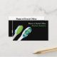 Ett modernt tandläkaraffärskort i stil med ett foto av en vit tandborste med blåborst och grönt mot svart bakgrund. Anpassa affärskortet med dubbla användningsområden i tandvård, med ett möte påminnelseutrymme på baksidan, genom att lägga till namn på ditt professionell tandkontor, tandläkare och kontaktinformation till anpassningsbarnas malltextområden.