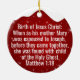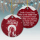 Mother Mary, Religious Holiday Ceramic Ornament with berry red snow capturing the Christmas magic and joy of a Christian season. On the back, a shortened (to fit and stay uniform) sacred writing, Matthew 1:18 from the King James Version (KJV) states: "Birth of Jesus Christ: When as his mother Mary was espoused to Joseph, before they came together, she was found with child of the Holy Ghost" all in customizable text, ready for you create your favorite bible verse in festive devotional design hanging decorations. Order your Christ teachings testaments today and make your custom inspirational doctrine keepsakes extra special with divine passages of the word of our Lord! 🎄⛪️