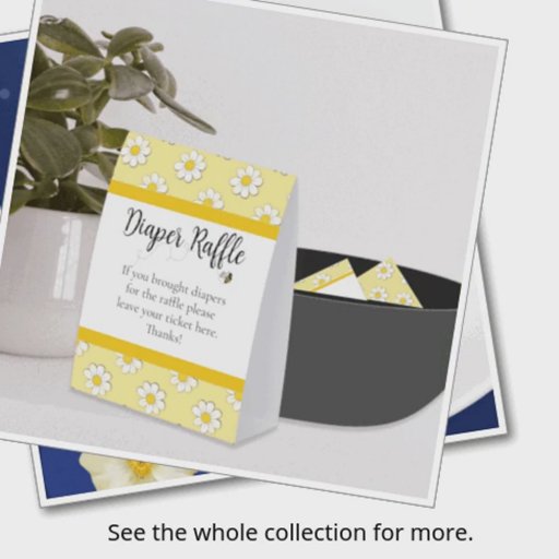 Baby shower invitation with a "mother-to-bee" theme. It's designed with a scrapbook style collage of bees, berries and flowers for a cute retro vibe in pinks and yellows. All text is pre-formatted front and back and ready for your own details.