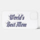 Mother's Day Phone case with World's best Mom in 3D blue-gray text. Available for several phone styles.