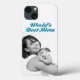 Mother's Day Phone case with World's best Mom with your own photo and 3D sky blue text. Available for several phone styles.