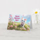 For any mom, a cute Happy Mother's Day card with a darling white kitten in a whimsical scene of flowers and hearts and customizable text too.
