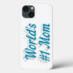 Mother's Day Phone case with World's #1 Mom in 3D sky blue text. Available for several phone styles.