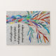 Detta prydnadspussel i pusslet har ett regnbåge-färgad-mosaik träd och ett inspirerande citat. Du kan ändra offerten till ett eget. Använda alternativet Anpassa ytterligare om du vill ändra texten storlekt, stil eller färg eftersom vi skapar teckningen kommer du inte att hitta den här bilden från andra designers. Original Mosaic © Michele Davies.
