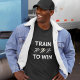 En design för var och en som vill känna sig mer inspirerad till tåg. Det finns tre piktogrammatiska springer, den centrala är i en vinnares guld färg och texten är "TÅG TO WIN". Text i vitt, perfekt för mörk-färgad-plagg. (mörk med text även tillgänglig, för vit och lätt kläder.)