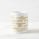 Start your day with a sip of inspiration. This glossy white mug features the radiant gold calligraphy quote “An elegant woman will always be true to who she is.” The flowing script gleams like sunlight, reminding you of strength and authenticity with every pour.