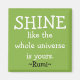 En motivationsmässig citattmagnet med Rumis inspirerande ord "Shine like the Hela universum is your". Bakgrunden till grönt färg är den senaste hemdekanaren färg 2017.Du kan också anpassa bakgrunden till färg efter eget val.