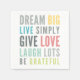 by kat masard >> WWW.SIMPLYSWEETPAPERIE.COM <<< Original typography design with inspirational ord to live by - Dream Big, Live Simply, Ge Kärlek, Laugh Lots, Be Gratish...