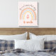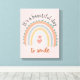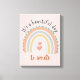 Tillsätt en touch av värme och positivitet i ditt utrymme med denna charmiga boho-inspirerade väggkonst. Designen visar en mjuk, pastellfärgad regnbåge med en serie bågar i lugnande toner av persika, mint och kräm, var och en dekorerad med förtjusande mönster som scallops och små hjärtan. I mitten av regnbågen ekar ett enda hjärta budskapet ovanför det: "Det är en vacker dag att le".
