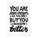Svartvit linoskrift av ett motiveringscitat som säger "Du är tillräckligt bra, men du kan alltid vara bättre". Det uppmuntrar människor att veta att självacceptans och tillväxt går hand i hand.