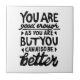 Svartvit linoskrift av ett motiveringscitat som säger "Du är tillräckligt bra, men du kan alltid vara bättre". Det uppmuntrar människor att veta att självacceptans och tillväxt går hand i hand.