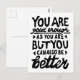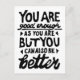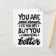 Svartvit linoskrift av ett motiveringscitat som säger "Du är tillräckligt bra, men du kan alltid vara bättre". Det uppmuntrar människor att veta att självacceptans och tillväxt går hand i hand.