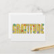 Visa din tacksamhet eller inspirera en nära och kära att vara tacksam med dessa fantasifulla, inspirerande vykort. Den stilrena designen har ordet "tacksamhet" skrivet i dekorerad text med en gul senapsfärgad bakgrund, färgglommiga blommor och blomsterinspirerade henna-tatueringmönster.
