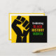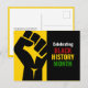 Motiverande BLACK HISTORY MONTH vykort som visar en svart uppåtriktad knuten näve mot en rik gul bakgrund till vänster, och FEIRAR BLACK HISTORY MONTH i fet vit, röd, gul, grön typografi mot en rik svart bakgrund till höger. På baksidan finns en ANPASSNINGSBAR hälsning som du kan anpassa med din egen text. Ett bra sätt att hålla kontakten under Black History Month-säsongen. Andra varianter av BHM-kort, inbjudningar, kläder och dekorationer finns tillgängliga.