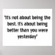 "Det handlar inte om att vara bäst. Det handlar om att vara bättre än du var i går" är en bodybuilding i fantastisk och idrottsmuren poster för motivation och inspiration.